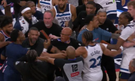 开云体育入口-快船、森林狼球员为争夺篮球发生冲突,伦纳德:看,打架了